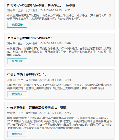 这里聚集了一群有识之士,你可以对关于餐饮业中央厨房领域内所遇到的困扰问题进行免费提问,可实现点对点问答,让你不再为一个问题而耽误更多时间!当问题得到解答后,此问题答案对所有人可见。 听说,没事儿多来逛逛,还能涨知识呢~