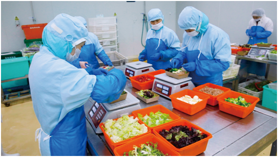张科:近年来,国家一直在推广“以中央厨房助推三产融合”的概念,我们链融积极响应国家的号召,创新布局三级中央厨房的模式来助推一二三产业的融合。首先,我们在比较发达的种养殖生产基地建设第一级中央厨房,生产净菜半成品配送至全国二级和三级中央厨房,或是为供应商代加工。换言之,将各级中央厨房或供应商的净菜需求形成订单,传递到蔬菜种植基地,发展订单农业。第二,我们在全国多个城市建设第二级中央厨房,又称城市中央厨房,专业生产净菜、半成品,用于供应城市中的餐饮网点后厨、商超便利零售系统、农贸经销市场等。第三,我们承接城市团餐服务,在各个项目点设计第三级中央厨房,即卫星央厨,为客户提供团餐服务保障。利用这种三级中央厨房的模式实现餐厅与企业超市、企业福利商城的有机结合,实现消费者与生鲜基地的有机结合,实现社区商业与学校、卫星央厨的有机结合,以及一二三业务曲线的良性互动。
