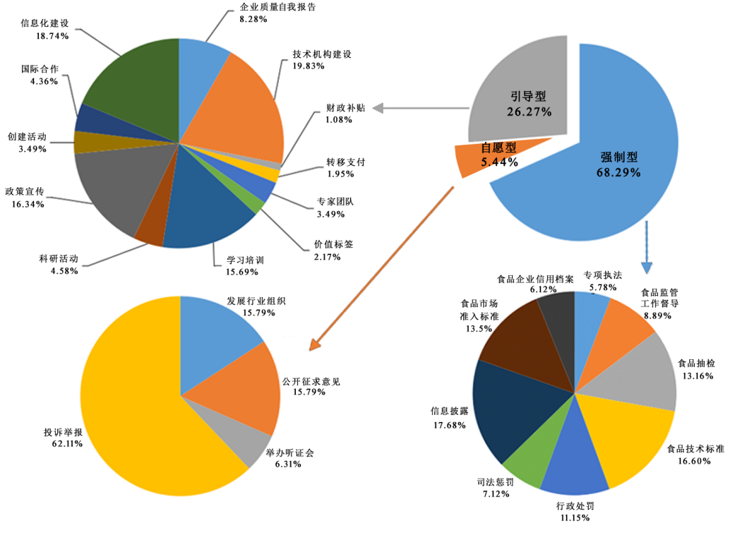 食品安全风险治理三类政策工具使用占比的百分比图(单位:%)