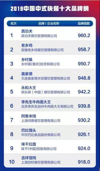 7月2日,在“2019中国餐饮营销力峰会暨中国餐饮(品类)十大品牌颁奖盛典”上,“2019年中国中式快餐十大品牌榜”正式揭晓。