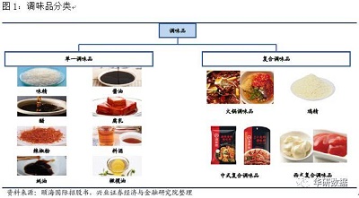 调味料是指被用来少量加入其他食物中用来改善味道的食品成分。单一成份调味料指含有一种主要原材料的调味料,典型产品包括味精(谷氨酸钠)、酱油、醋、腐乳、香辛料、调味酒及蚝油。复合调味料指以两种或以上原材料制成或含有两种或以上原材料的调味料,典型复合调味料包括火锅调味料、中式复合调味料、鸡精、西式复合调味料及其他。