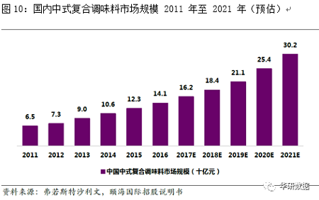 根据Frost&Sullivan的统计,中式复合调味料的复合增速是中国调味料品类中增长最快的,11-16年复合增速为16.8%,预计16-21年复合增速为16.5%。和火锅调味料不同,中式复合调味料没有明显的季节性。