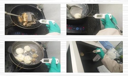 此次科普实验选取8批次速冻食品采用产品外包装标示(推荐)的烹饪方式进行烹饪,通过检测速冻食品在不同的烹制方式、烹制时间下食品中心温度,了解速冻食品烹制方法对食用安全的影响。
