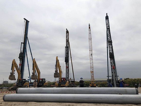 洋山口岸查验区海关查验冷冻(藏)库工程项目正式开工。摄影:方卓然