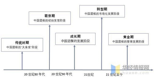中国团餐的发展历经了以下五个阶段:(1)传统时期—中国团餐的“大食堂”阶段;(2)萌芽期—中国团餐的初始发育阶段;(3)成长期—中国团餐的发展阶段;(4)转型期—中国团餐的市场化发展阶段;(5)黄金期—中国团餐的繁荣发展阶段。