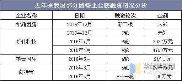 2019年4月,《2018年度中国餐饮企业百强》名单发布,前50强中团餐占据11席。千喜鹤、深圳中快、鸿骏膳食等成为团餐行业的龙头企业,团餐经营重点分别落在军事院校、全国高校以及龙头企业。近年来美团、饿了么两家外卖企业在团餐外卖上也早有布局。美团点评在2015年投资的“美餐”已完成数亿元战略融资。2020年初,顺丰也高调入局团餐行业,顺丰丰食面向所有用户推出了“瓜分500万”的活动,用户可通过“邀请企业入驻”和“我要推荐企业”页面推荐企业。预计未来几年资本将成为我国餐饮供应链进入快车道的重要助力。