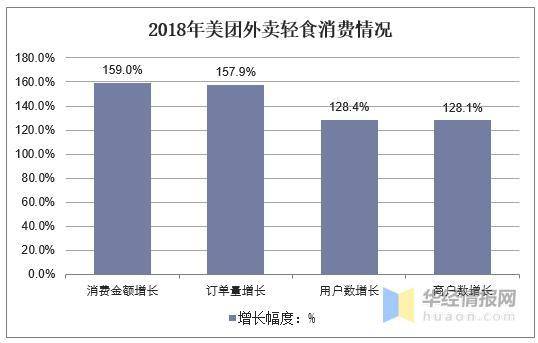 近几年我国消费者越来越关注食材品类的营养价值。相比于2017年,2018年美团外卖轻食消费金额增长了159%,订单量增长了157%,用户数和商户数也有128%的增长。