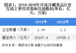 根据国家统计局数据,2019年全国规模以上冷冻冷藏食品工业企业10850家,同比减少147家。完成营业收入2.0万亿元,同比增长9.5%,增速分别高出全部规模以上工业、全国食品工业营业收入增速5.7和5.3个百分点,实现较高速增长。冷冻冷藏食品工业营业收入占食品工业(不含烟草制品业)比重达到24.9%,比2018年提高0.5个百分点,有力发挥出基础民生产业重要作用。