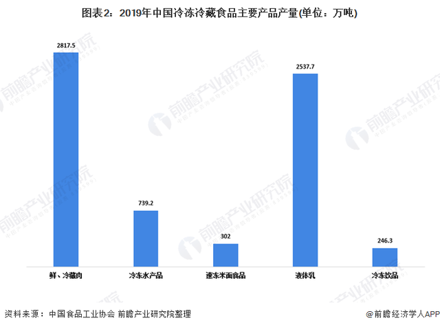 2019年度冷冻冷藏食品行业执行食品工业“三品”专项行动,改革创新辟新径,迎难而上求发展,实现增品种、提品质、创品牌,冷冻冷藏食品门类增加,品种丰富,产品结构优化升级,向定制化、高端化、差异化方向发展,有力满足市场消费升级趋势,对安全、营养、方便、快捷的需求。主要冷冻冷藏食品产量稳定增长,全国鲜冷藏肉产量2817.5万吨,同比增长0.9%;冷冻水产品739.2万吨,同比增长3.7%;速冻米面食品302万吨,同比下降0.2%;冷冻饮品246.3万吨,同比增长0.6%。