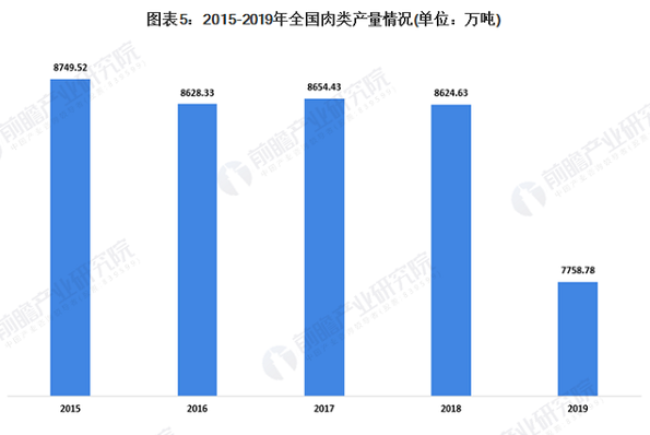 我国是猪肉生产和消费大国,猪肉产品需求坚挺。自2018年8月我国确诊发生第一例非洲猪瘟疫情以来,2019年度全国共报告发生了63起非洲猪瘟疫情,共扑杀生猪39万头,据国家统计局数据,2019年全年肉类产量7758.78万吨,同比下降10%。