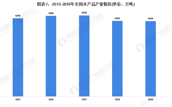 在国家“以养殖为主,养殖、捕捞、养护和加工全面发展中国特色渔业”产业政策引导下,2019年全国水产品加工业稳定发展。据国家统计局数据,2019年全国水产品产量6450万吨,其中养殖水产品产量5050万吨,同比增长1.0%,捕捞水产品产量1400万吨,同比下降5.0%。水产品存量充足,满足市场供应。有效改善食物结构,提高人民营养水平。