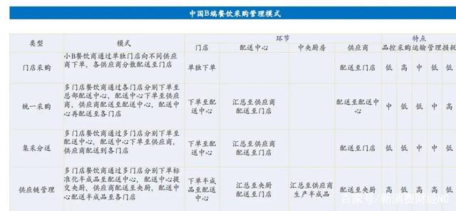 采购生产配送标准化,对标供应链升级需求对于分散的单独门店来说,其采购方式较为初级,在成本与品控两端竞争力较弱;对于初具规模的餐饮企业来说,统一采购、集采分送的形式对品控提出挑战;对于连锁型餐饮企业来说,自建中央厨房及供应链使得其后期管理成本难以得到有效控制。在采购管理模式成熟度有限的背景下,供应链升级大势所趋,留给半成品、预制品成长空间巨大。