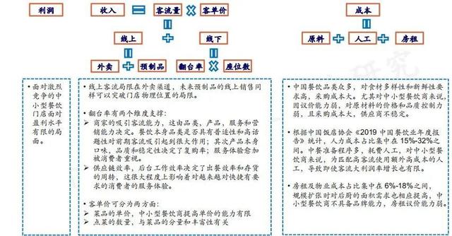 助力餐饮商增收降本,提高单店盈利水平对于中小餐饮商来说,其收入取决于客流量及其客单价。从客流量层面来看,半成品、预制品能够依靠无空间限制、保证产品质量等方面,从在线上线下吸引客流,促进复购。从客单价层面来看,半成品、预制品能够从SKU扩充等方面提升中小餐饮商提高单价的能力。此外,由于中小餐饮商议价能力有限且面临的人工、门店成本较高,其成本控制相对弱势,而半成品、预制品能够从前端规模化采购到后期加工,有效降低中小餐饮商原材料、人工、房租方面成本。