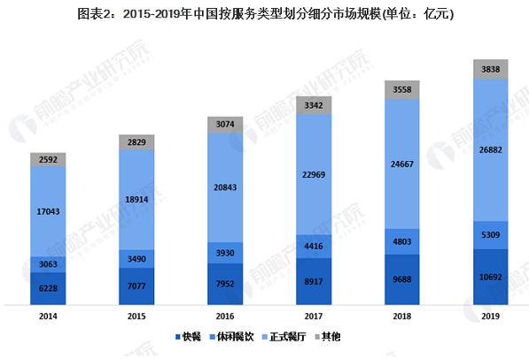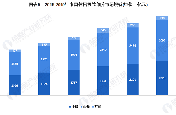 休闲餐饮细分市场在2014年至2019年是中国餐饮业中增长最快的餐厅服务类型,其整体市场的占比不断增加,由2014年的约10.6%增加至2019年的约11.4。受中国人口的消费升级及高品质用餐体验更受重视所带动,休闲餐饮的细分市场规模由2014年的人民币3063亿元增至2019年的人民币5309亿元2019年,西餐占中国休闲餐饮市场规模的50.7%,而中餐的市场份额则为43.8%。