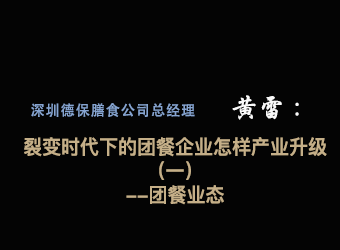 黄雷:裂变时代下的团餐企业怎样产业升级(一)--团餐业态