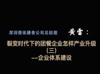 黄雷:裂变时代下的团餐企业怎样产业升级(三)--企业体系建设