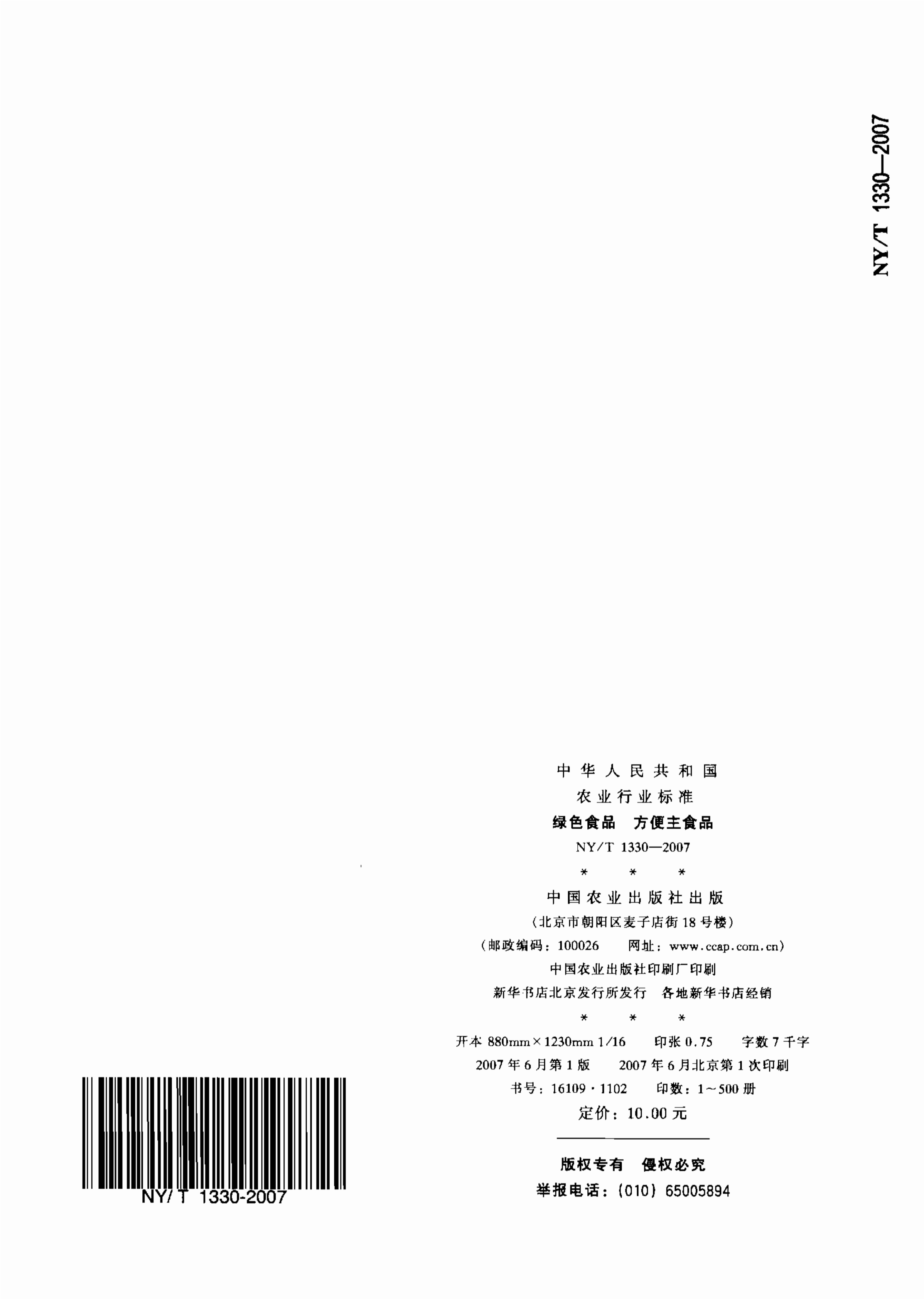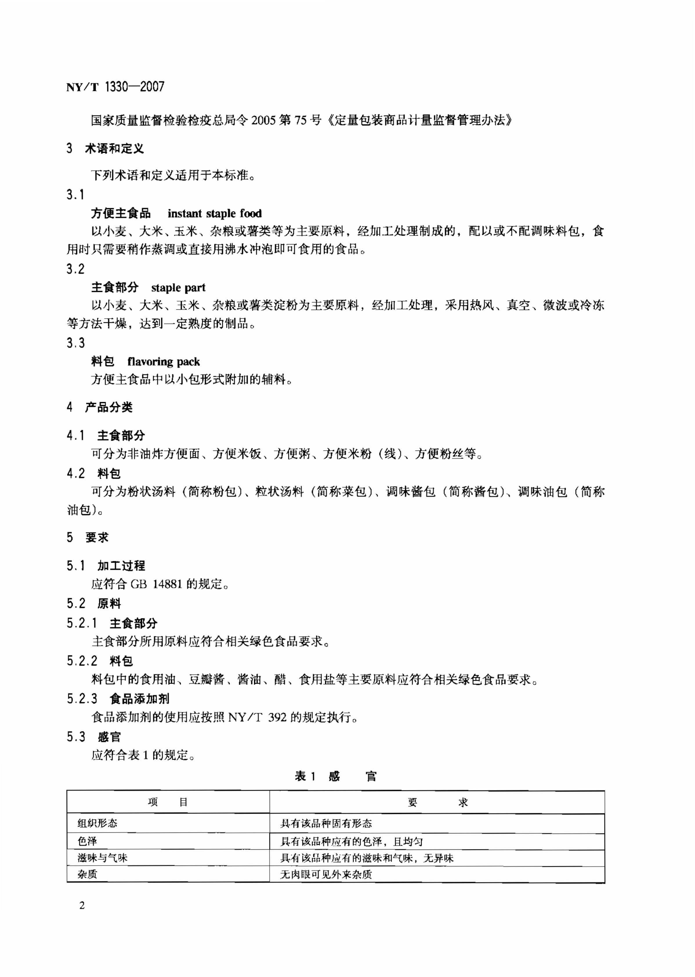 NY/T 1330—2007 绿色食品 方便主食品