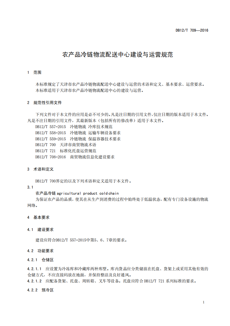 DB12/T 709—2016农产品冷链物流配送中心建设与运营规范