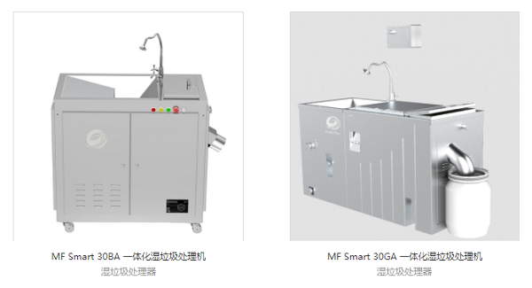 “MF Smart”一体化湿垃圾处理系统,通过厨余湿垃圾粉碎、研磨、脱水、灭菌等工艺, 满足了‘就地化处理’的要求。